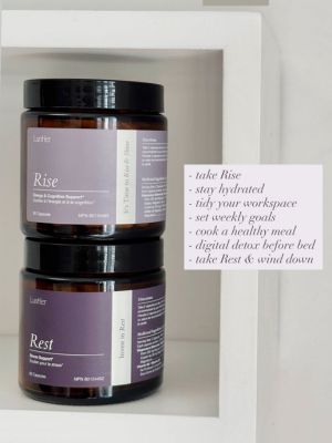 I especially love that there is a Rise and a Rest. Each is thoughtfully formulated with specific vitamins and supplements ; Rise to support energy and focus during the day, and Rest to help calm the nervous system and promote relaxation before bedtime.